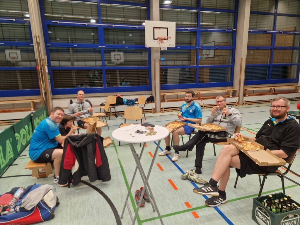 Nicht nur stark an der Platte, sondern auch danach präsentiert sich die „Zweite“ der SG Hockenheim/Reilingen. Hier ein Bild nach dem Heimsieg letzte Woche gegen St. Ilgen – da wurde gemeinsam noch Pizza gefuttert und der Dehydration vorgebeugt.
